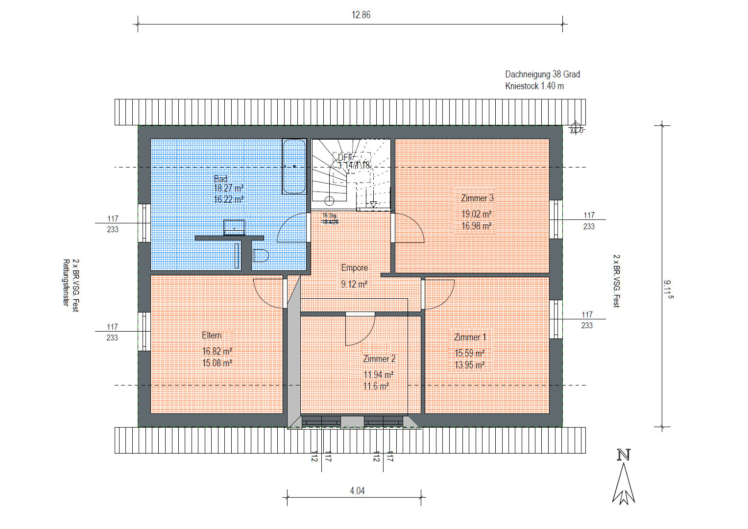 Dachgeschoss: Elternschlafzimmer, 3x Kinderschlafzimmer, Bad
