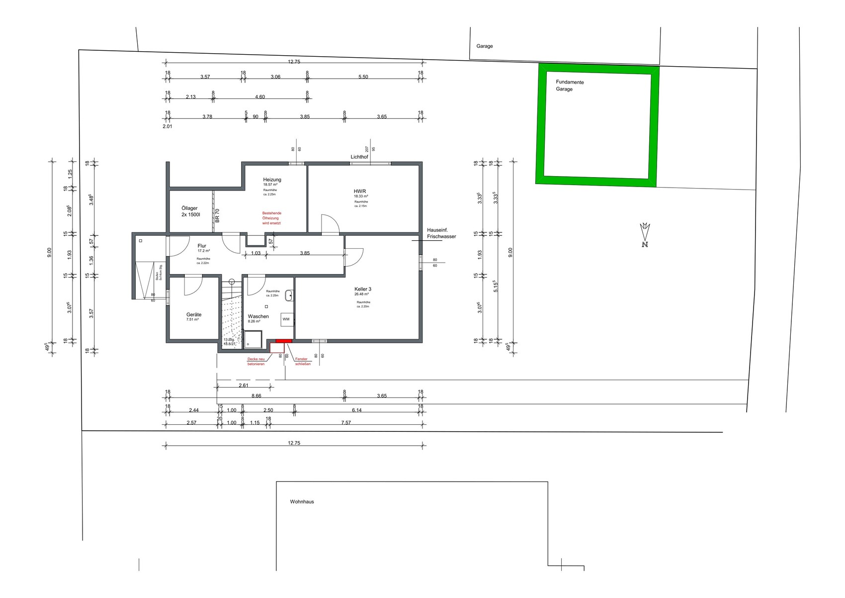 Wie bereits geschrieben, werden wir auf den Bestandskeller einen 1,5-geschossigen Neubau setzen.