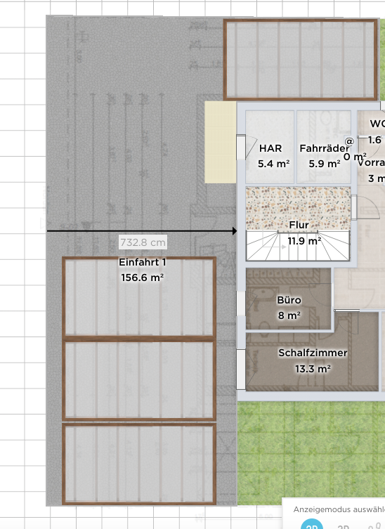 du hast allerdings nur 4 Stellplätze eingezeichnet, war das Absicht? Wie breit sind die Stellplätze jeweils?