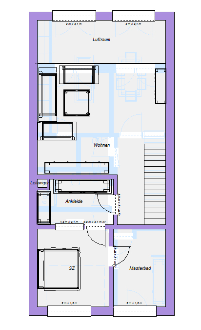 Die Spitze bleibt für Weihnachtsengel & Co. Kann ich nicht darstellen, da mein Programm maximal 3 Etagen bietet. Muss man sich selbst zusammenreimen. Bei den Treppen habe ich jetzt mal radikal 275 Geschosshöhe angenommen (240 Deckenhöhe).