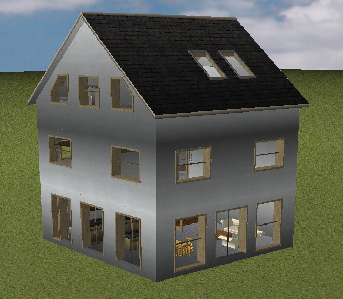 Ich überleg die ganze Zeit, ob ich die Treppe noch gedreht bekomme. Dann hätte man den Platz darunter als kleinen Stauraum und die Schleppgaube wäre vermutlich hinfällig. Eventuell muss ich doch noch mal mit dem Eingang um die Ecke spielen. Aber momentan ist erst mal die Luft raus.