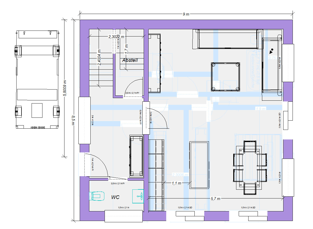 Die von dir erstellten Lösungen fand ich beide klasse, Nur durch das Stellplatz-Problem funktioniert es leider nicht. Ich denke aber auch, dass wir durch den fehlenden Keller eh auf eine etwas längere Garage angewiesen wären da man ja sonst keine Stellmöglichkeit für Rasenmäher, Fahrräder etc. hätte.