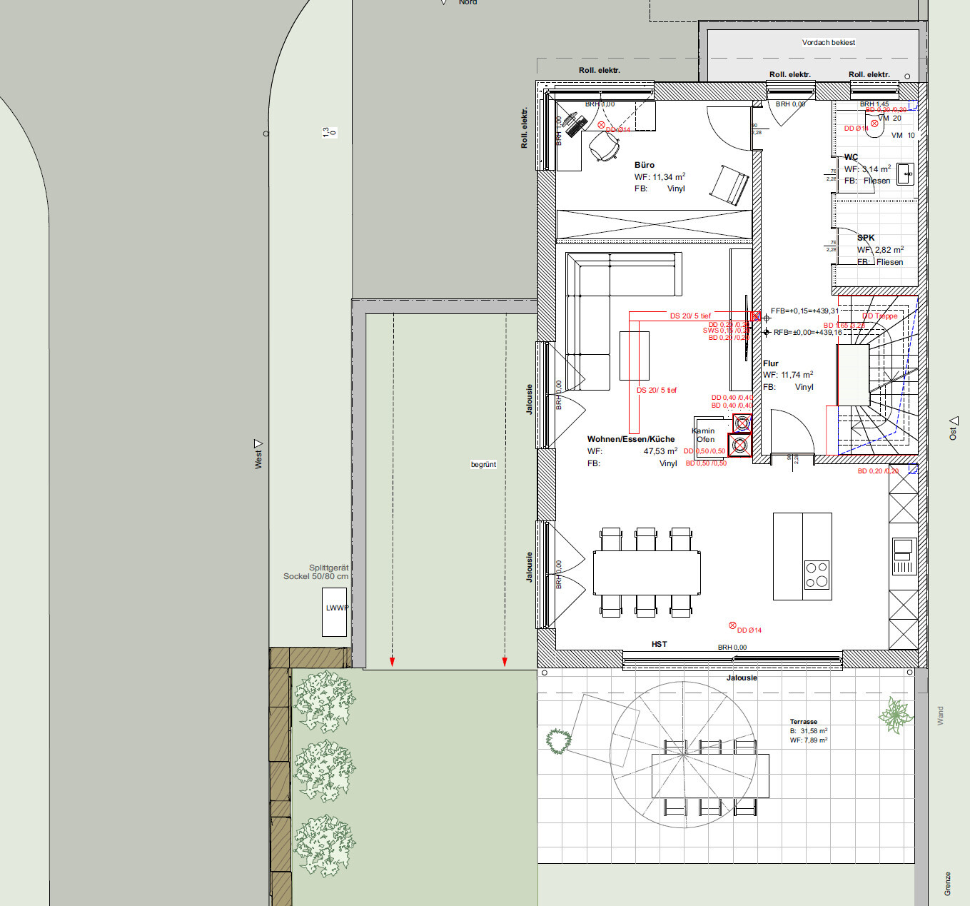 Der Kamin und Ofen im EG wird deutlich harmonischer gestaltet und liegt aktuell beim Ofenbauer zur Zeichnung.