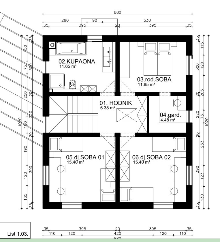 In der Version mit 3 Kinderzimmer wollte ich, dass es nicht weniger als 11 Quadratmeter sind.