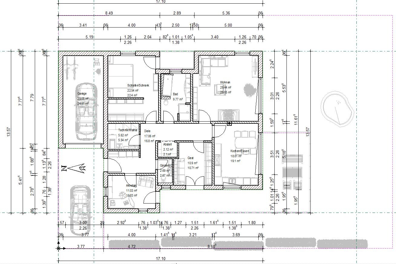 Auch an der Grundform halten wir nicht fest, aber es ist auf so einem kleinen Grundstück auch nicht so einfach alles gut unterzubekommen.