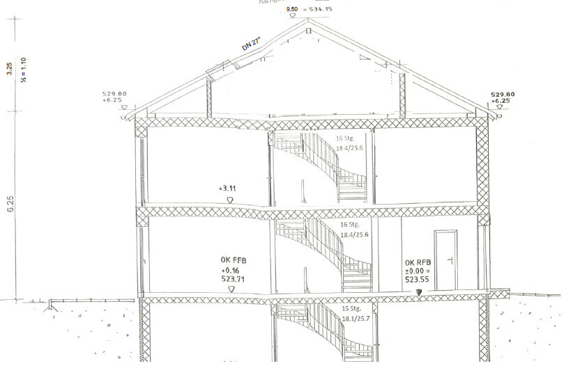 Als Treppe reicht eine „normale“ 2-fach gewendelte.