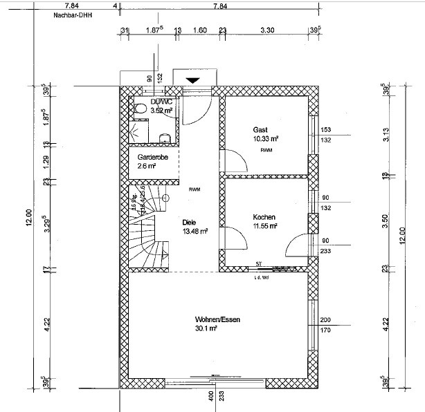 Der Architekt hat uns das aktualisierte (unten angehängte) geschickt. Die Diele im EG wurde nicht viel geändert, da nach Meinung des Architekten eine Reduzierung der Breite gegenüber der Eingangstür nicht gut aussehen wird.