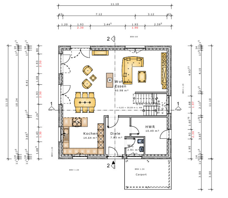 Aus dem Grundriss von nehme ich für mich positiv mit, dass die Podesttreppe und der dann etwa 1,70m Breite im Flur eine gute Möglichkeit ist, Tageslicht in den Flur im OG zu bekommen (auch wenn das wie gesagt für uns kein Muss ist). Ein Dachgeschoss wollen wir gerne vermeiden, aktuell haben wir mit Keller vier Etagen und das ist nicht optimal. Wir wollten eigentlich einen Bungalow, da ist aber insbesondere das Thema Erdaushub und Entsorgung eine Katastrophe, bei uns wären auch die Flure sehr lang geworden. Wir favorisieren die Betondecke über dem OG und würden darüber lieber keinen zusätzlichen Wohnraum haben (auch wenn mir bekannt ist, dass es Firmen gibt, die solide Dächer nicht aus Holz bauen).