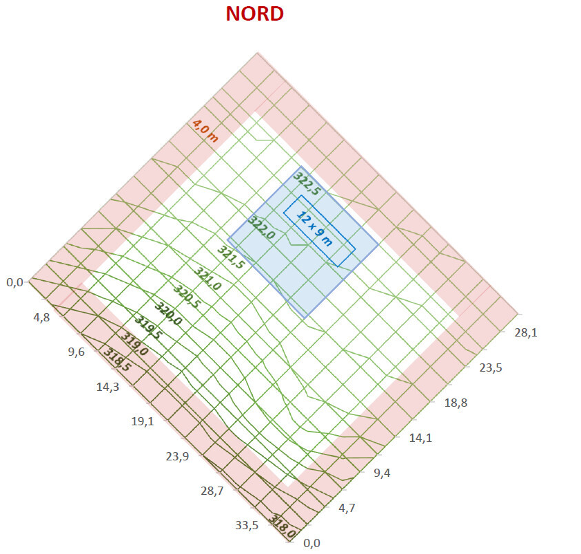 Ich sehe etwas Schaufelei (siehe Pfeile), sodass der Bodenplatte-Bereich relativ eben ist.
