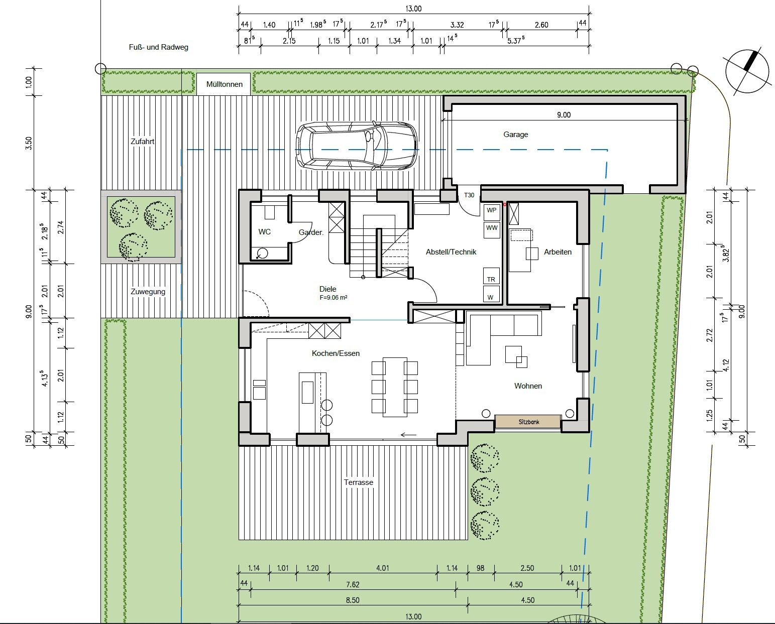 Wir haben jetzt auch mal den Vorsprung im Essbereich weggelassen, damit der Baukörper einfacher bleibt. Da müssen wir mal irgendwie ein besseres Gefühl für bekommen, was sowas wirklich kostet.