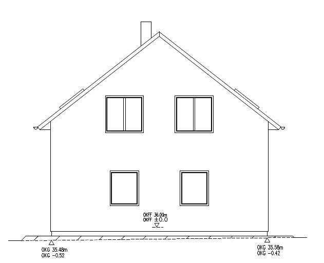 Aber Du willst es ja, und dazu sage ich: es könnt etwas mehr eingezogen werden. Optisch fällt es aus dem Haus... ich würde es um 30-50 cm einrücken. Das ist aber kein Mangel, wenn man so etwas bespricht Würde das WZ nicht total dunkel werden, wenn es weg wäre? Weiter einziehen wird schwierig, da ich noch den Platz für das Klavier brauche neben dem Sofa. Und da sollte dann kein Fenster sein. Ursprünglich hatte ich erst 50 cm anvisiert, aber da hat schon mal der Architekt eingegriffen Ich bin mal das Problem der Fenster im OG angegangen und habe die Fenster im Schlafzimmer und Kinderzimmer um etwa 20 cm Richtung Außenwand geschoben. Somit ergibt sich im Schlafzimmer zwischen Fenster und Innenwand etwa 75 cm Platz für Schränke. Im Kinderzimmer nicht ganz so viel (40 cm), aber muss auch nicht. Durch diese 20 cm ergibt sich, dass die unterliegenden Fenster im EG genau mittig liegen. Ich habe mal diese Ansicht nachgebildet, was meint ihr dazu?