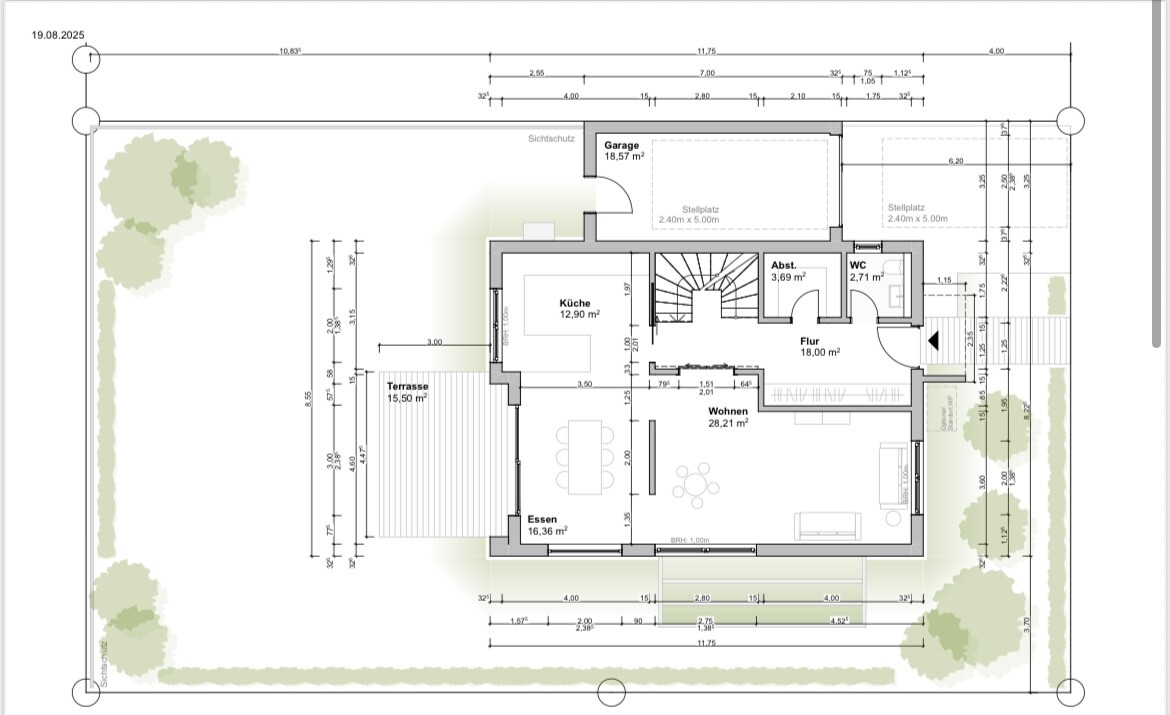 1,5 Meter auf einem so kleinen Grundstück sind mMn dann aber doch schon ganz ordentlich, was wiederum Kosten für die Außenanlagen steigern wird. Habt ihr das bedacht?