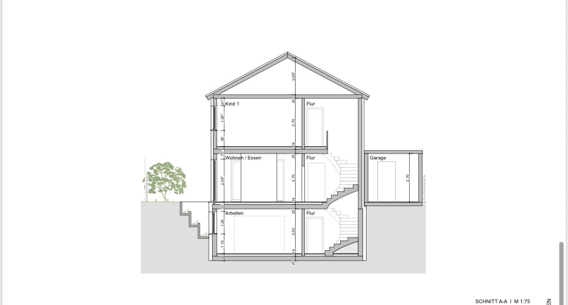 Wir sind nochmal in uns gegangen und haben etwas überarbeitet. Auch wenn einige den Weg oder die Arbeit des Archithekten hier verteufeln sind wir ihn nun mal gegangen und würden uns ueber konstruktive Kritik oder Verbesserungsvorschlage wirklich riesig freuen. Auch der Vermesser war mittlerweile da. Der Höhenunterschied liegt bei nur knapp 0,9m. Ich würde das Grundstück auch nicht „glätten“ wollen, sondern das Gefälle nutzen um den Keller noch besser zu belichten.