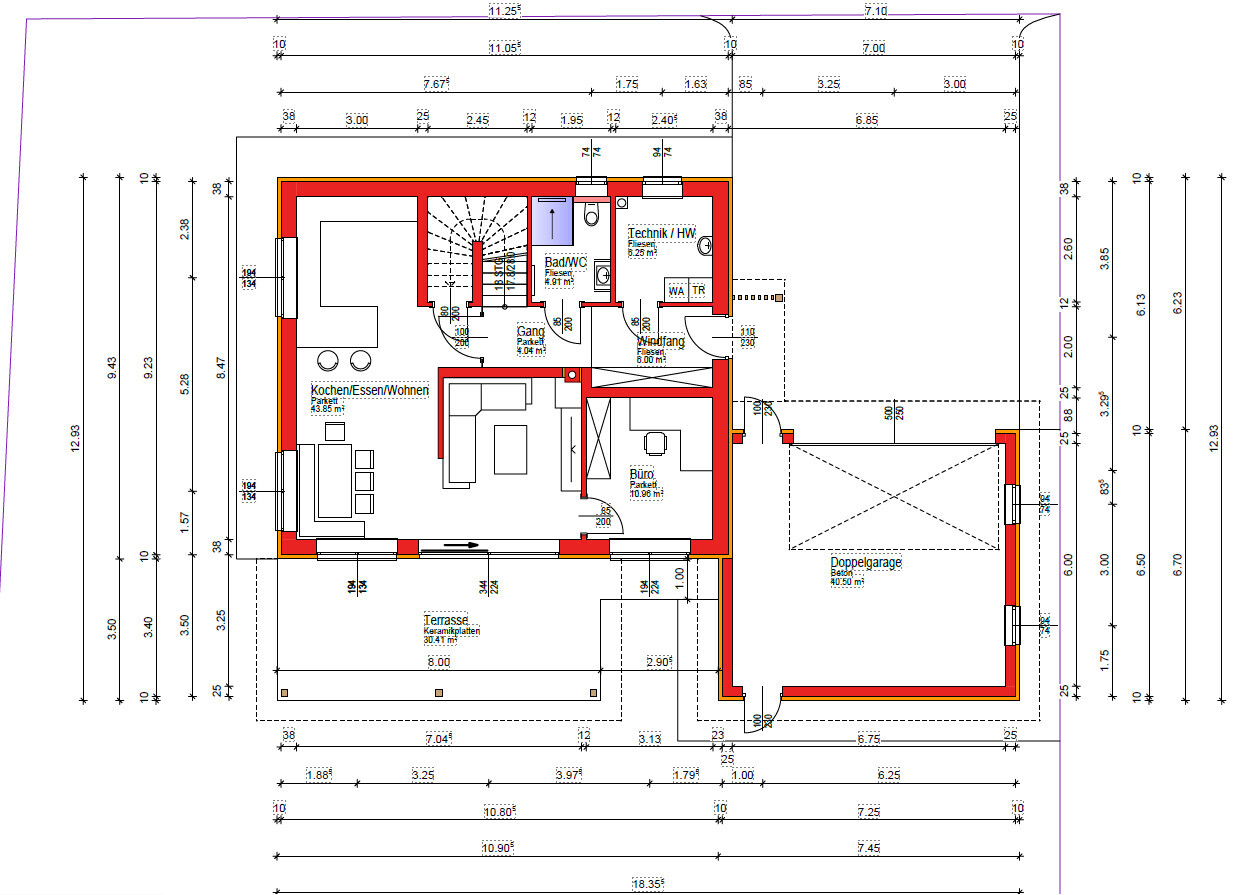 Technikraum oben kommt eher nicht in Frage, dafür sind wir zu wenig experimentierfreudig. Eher noch ein Technikraum-Zubau außerhalb der gedämmten Gebäudehülle -- wobei ich nicht wüsste wohin damit, würde überall im Norden stören und Licht wegnehmen. Oder was wir derzeit überlegen: Technikraum auf 6qm reduzieren, Hauswirtschaftsraum in OG, eventuelle Photovoltaik-Technik (Wechselrichter, Batterie) in Garage.Quatsch. Hauseinführung unten und eigentlicher Technikraum oben ist kein Experiment; Technikraum außerhalb der thermischen Hülle wäre schon eher ein solches. Den meisten (einsparungsbegehrten) Raum benötigen die Flächen für die Sicherheit der Wartungskräfte.toni111 schrieb: