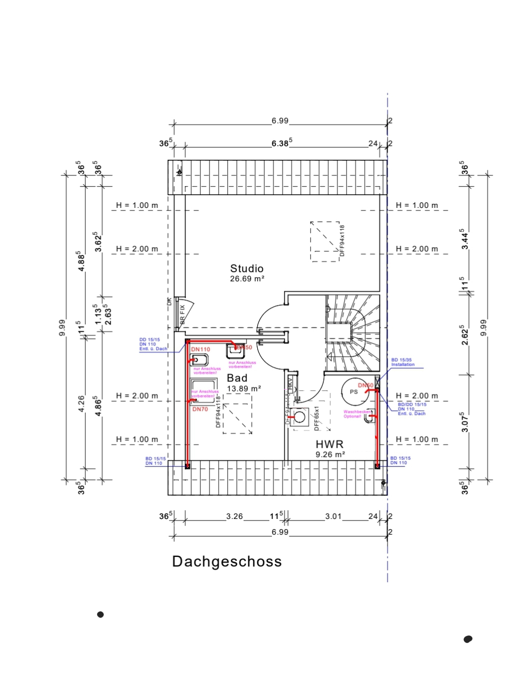 Und, wirklich genau klären, welche Hausanschlüsse noch da unten sein müssen und nicht nach oben unters Dach kommen. Was ist mit Sicherungskasten Elektro usw.