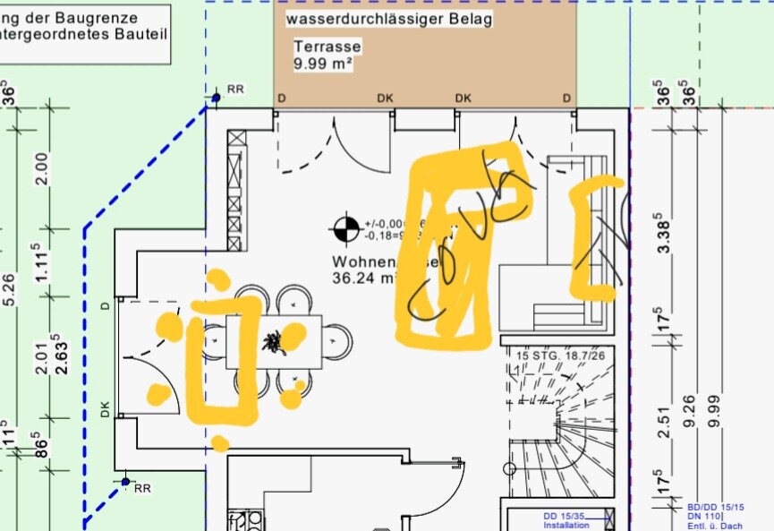 Die anderen 2 Häuser die mit uns gebaut werden, haben übrigens schon längst den Bauantrag fertig abgegeben, mit ihnen treffe ich mich auch am Mittwoch. Es gibt aber nichts, was ich mit den Nachnarn absprechen müsste, das wesentliche ist geklärt, ich muss mein Grundriss genauer anschauen und ändern lassen und kann zB. Die 15 cm Stufe auf der Terrasse nicht finde und wenn, was wäre da die Alternative?