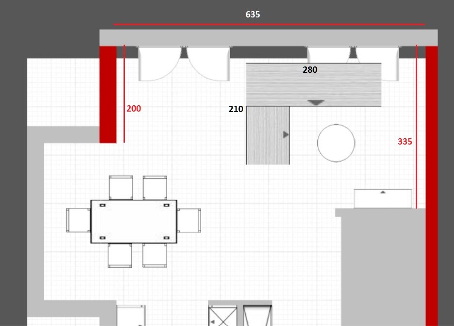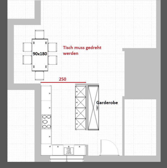 Ist die Küche eigentlich schon geplant? Wo sollen z.B. bei der aktuellen Planung die hochschränke hin?