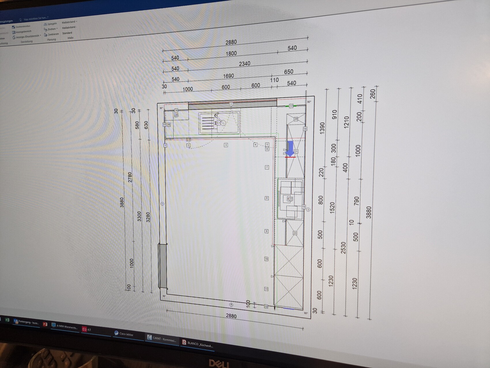 4. Nochmals bitte prüfen, ist das Küchenfenster innen, also wenn man in der Küchen stehen würde, mittig? Ist die Küche 288cm breit?