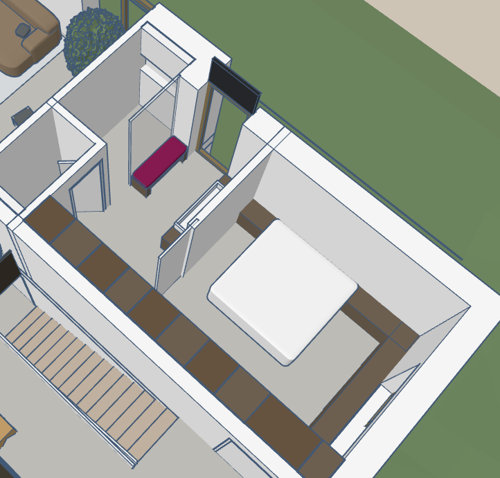 das würde dann so aussehen. Das war tatsächlich anfangs so angedacht, allerdings finde ich etwas störend, dass man am Durchgang vom Schlafzimmer in den Ankleidebereich auf die Seitenwand des Schranks zuläuft. Wobei das mit einer "richtigen" Tür auch anders ist als bei der Schiebetür.