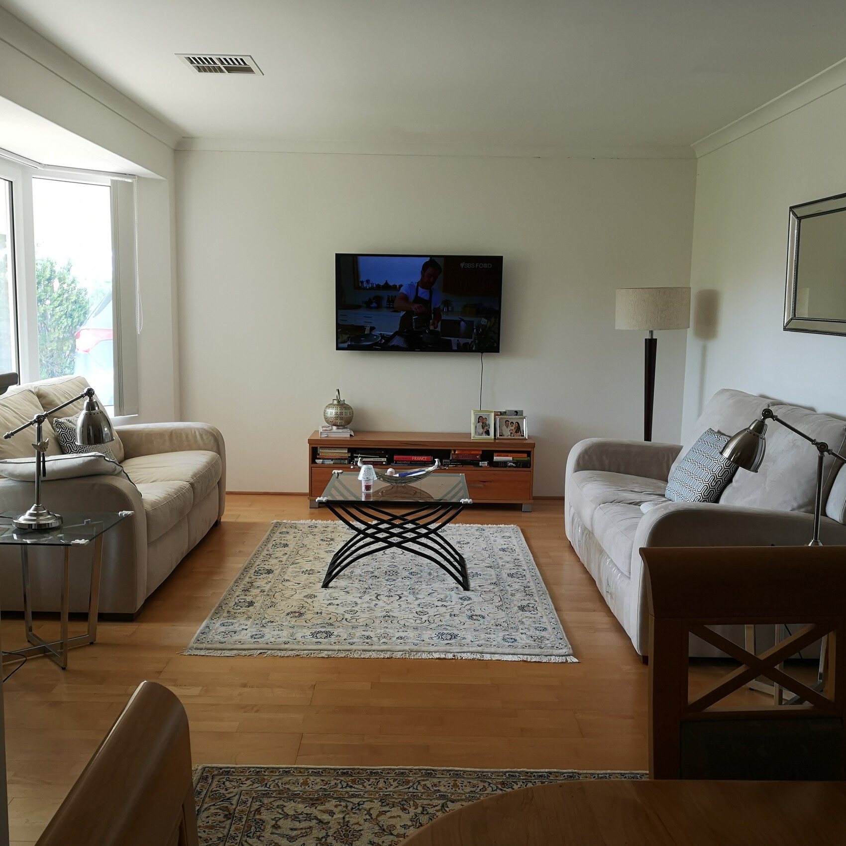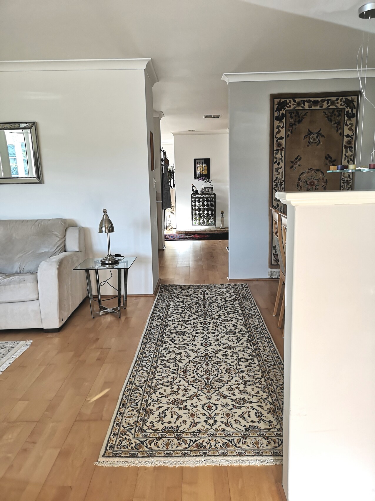 wenn man bei uns durch die Haustür kommt, sieht es so aus. Vor der Wand geht es rechts ins Schlafzimmer und ensuite und Ankleide, links ist ein Wohnzimmer, soz, die gute Stube. Rechts hinter der kurzen Wand ist ein esstisch.