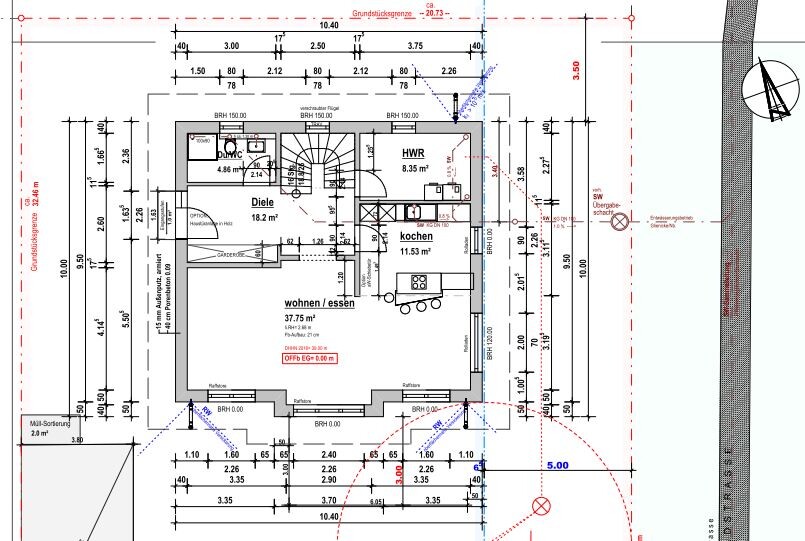 Uns ist bewusst, daß wir hier keinen neuen Design-Klassiker bauen werden. Es soll einfach, geradlinig und extrem kostensparend gebaut werden. Dem Entwurf würden 5-10qm Grundfläche mehr sicherlich guttun, der Bebauungsplan gibt aber nicht mehr her.