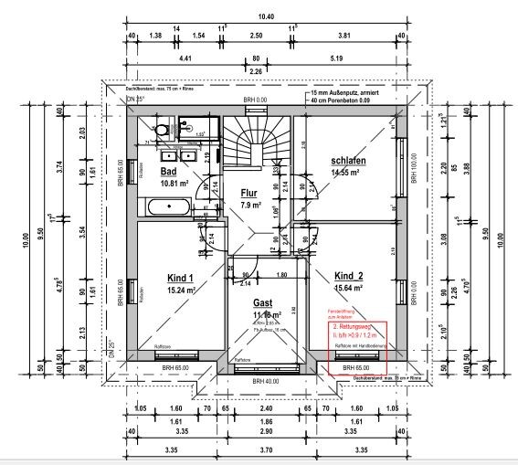Ersteres darf aufgelockert sein, also nach Möglichkeit keine eintönige Fensterflächenanordnung wie jetzt im Süden, sondern eben mal eins über die Ecke versetzen, um 90 Grad kippen, also legen als Fensterband oder weglassen. Kinderzimmer haben mit Brüstungsfenstern mehr Privatsphäre als mit bodentiefen, gilt für alle Schlafzimmer.