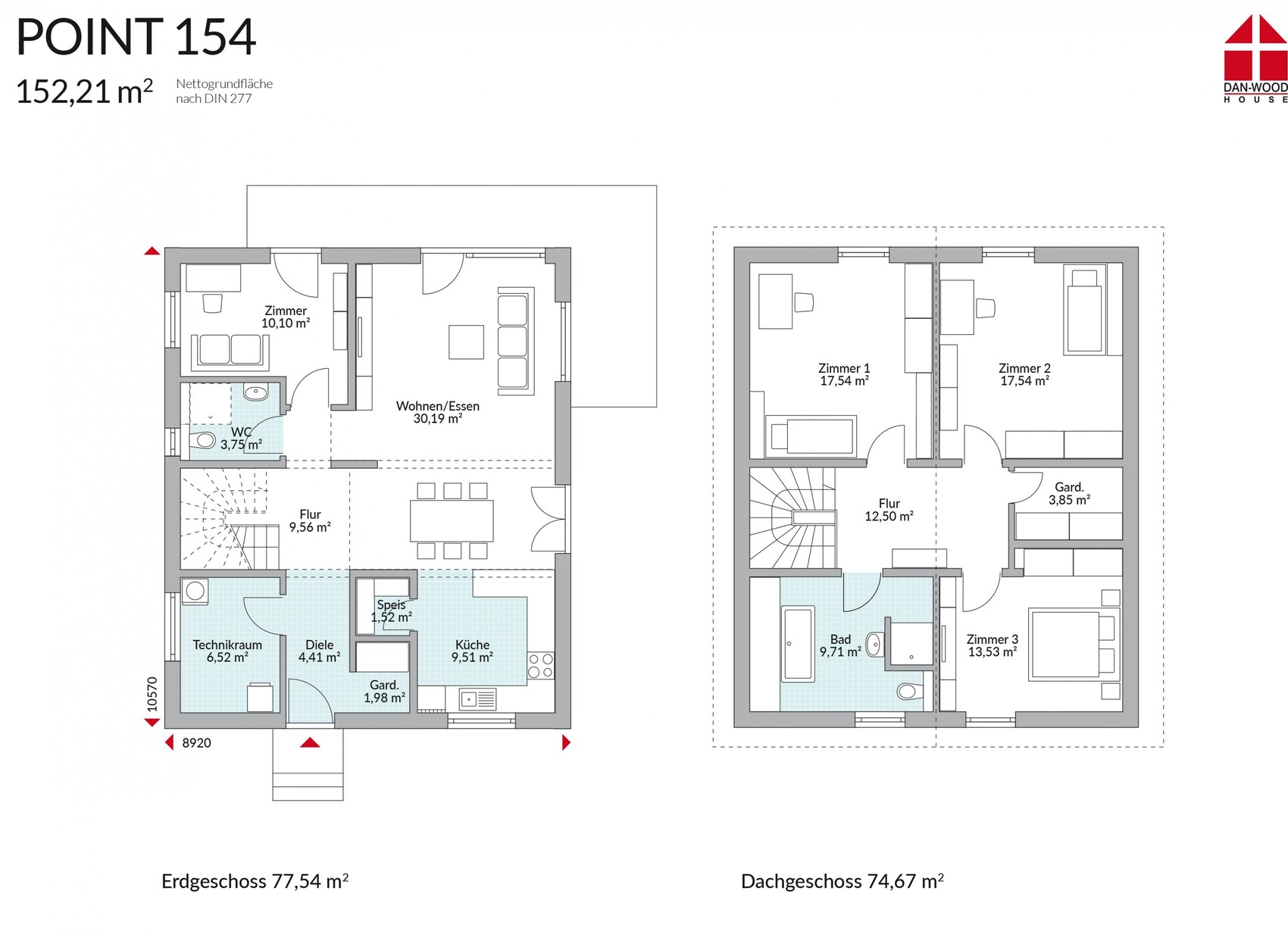 Dies hatte zur Folge, dass ich den Grundriss einmal im Uhrzeigersinn drehen musste. Dadurch mussten Gast und Hauswirtschaftsraum wieder getauscht werden, damit der Gast nicht im Dunkeln sitzt.Auch Quatsch... immer dieses „mehr Garten“ Ihr habt genug Garten, ob das Haus nun quer oder nicht gesetzt ist. Was bringt hier und da 10% mehr, wenn vorn oder seitlich 30% fehlen?