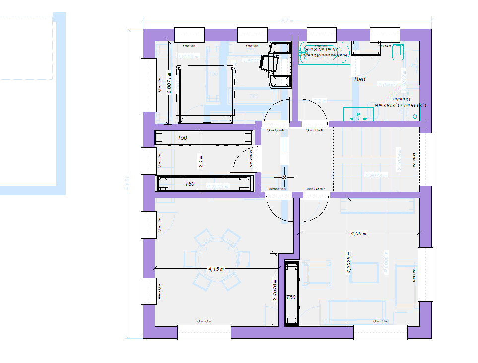 Den hab ich nicht ganz verstanden. Aber ich hab sowieso noch mal an der Größe etwas gezerrt und das OG umgestaltet. Das WZ war mir mit 4m gegenüber Ausgangsentwurf zu schmal. Jetzt bei 4,30m etwas besser - dafür sind die Garderobenschränke unten jetzt nur 1,80m statt 2m breit, was man aber sicher gut verkraften kann.