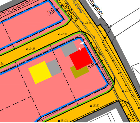 Ihr seid von 3 Straßen eingerahmt. Kann die Zufahrt auch planrechts im Nordosten erfolgen? So in etwa: