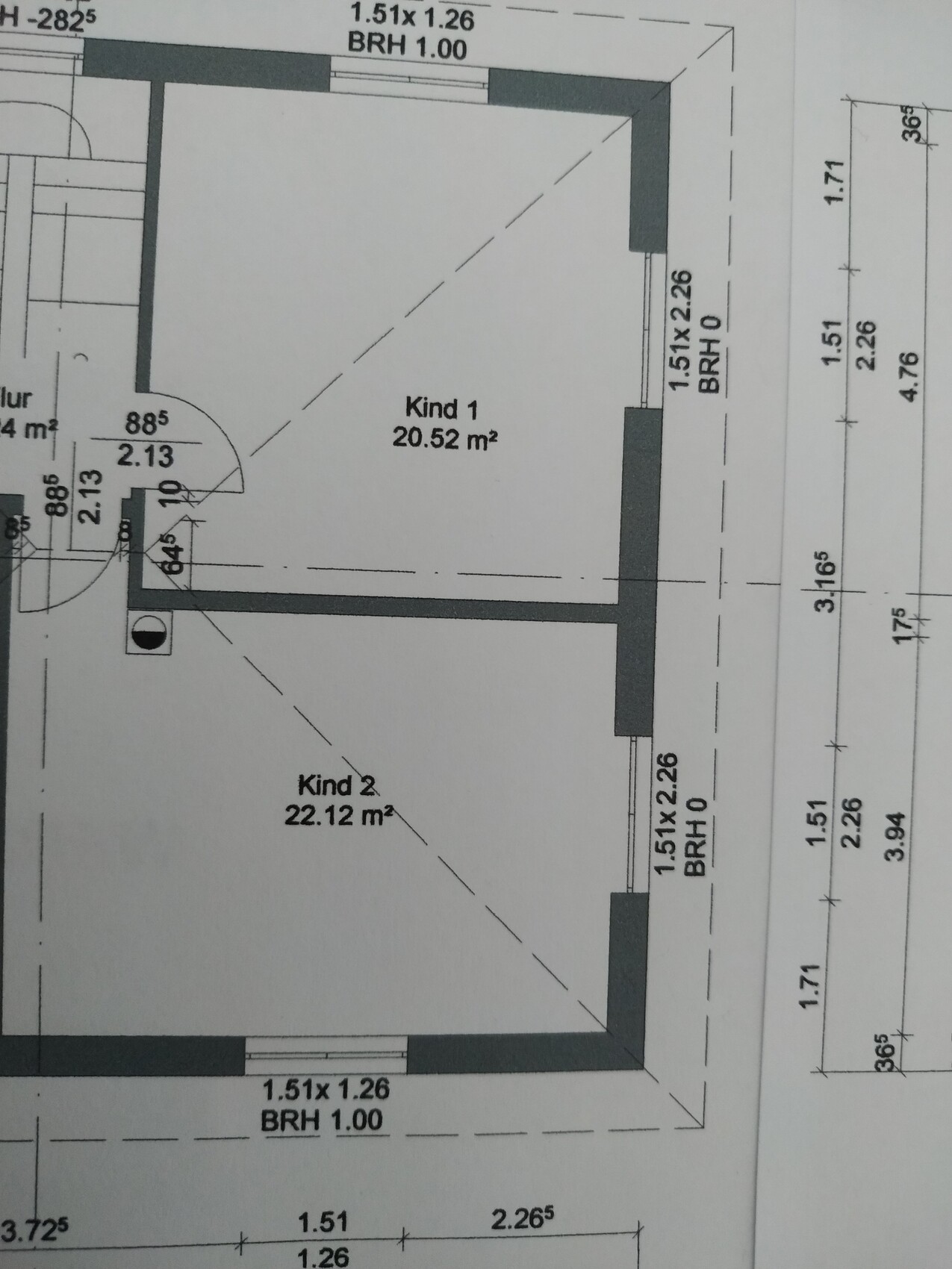 Ein weiteres Problem beschäftigt mich aber...der Schornstein. Ich finde der liegt sehr ungünstig, vor allem bei Kind 2 gefällt mir die Lage nicht. Alternativ könnte man den Schornstein bzw. Kamin im EG links neben die Hebeschiebetür stellen, also an die Außenwand. Wäre dann im OG in der Ecke (Außenwand) bei Kind 1.