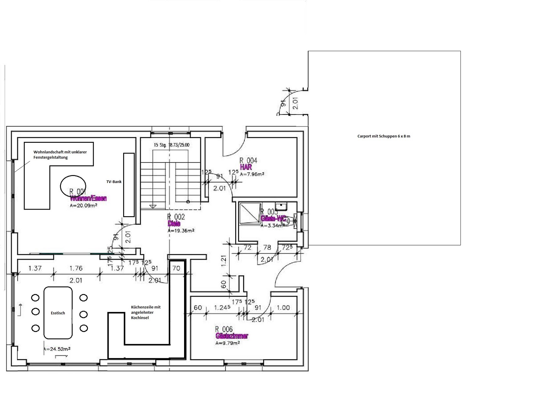 Daß Küche und Wohnzimmer möblierungsmäßig Black Boxes sind, sehe ich mit dem Carport jetzt irgendwie nicht zusammenhängend (?)
