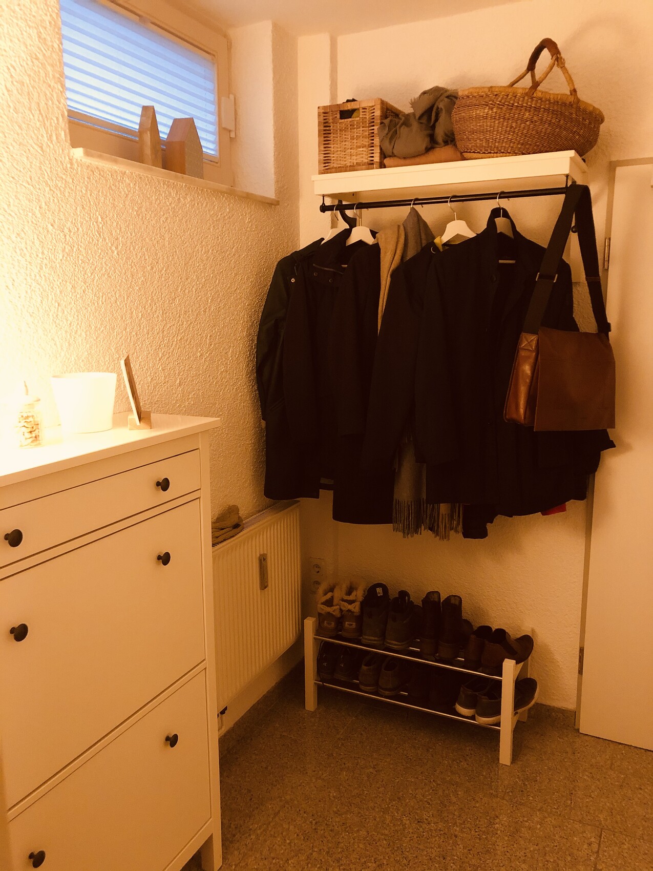So in etwa ist der Plan für die Garderobennische. Vielleicht gibt unser aktueller Flur eine gute Orientierung: