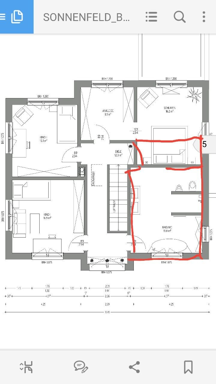 aber, so ein Riesenbad kann man ja anders aufteilenRiesenbäder kann man vernünftig eigentlich nur verkleinern, wenn man sie nicht nutzt. Ohne dritten Waschtisch (wo ich aber eher ein separates Kinderbad nähme), Whirlpool zusätzlich zur Badewanne und Dusche, Bidet etcetera erzeugen 20+ Quadratmeter Bad eigentlich nur eines: überlange Wege zwischen Notdurftverrichtung und Händewaschen. Aus meiner Sicht ein Bug, kein Feature. Und da Quadrate quer wie längs die gleichen Dimensionen haben, hilft hier m.E. nur: die Überfläche zu beseitigen. Dank der in die Ecke gekauerten Tür wirkt es in dieser Größe ja noch nicht einmal großzügig, nur zu weit.https://www.instagram.com/11antgmxde/