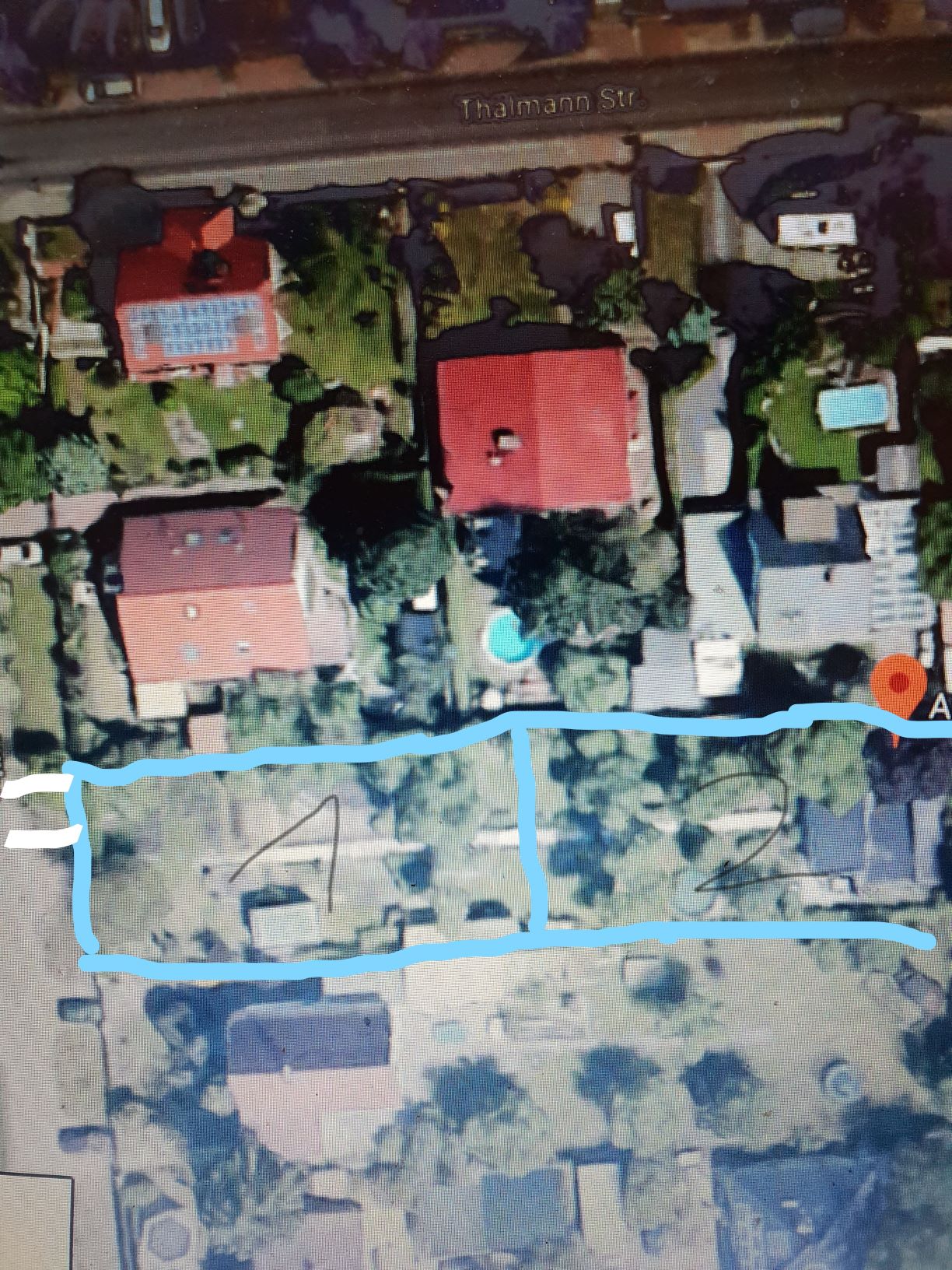 ich habe mal das Satellitenbild unseres Grundstücks hochgeladen. das Grundstück 1 ist unseres, dahinter Grundstück 2 unsere Nachbarn.