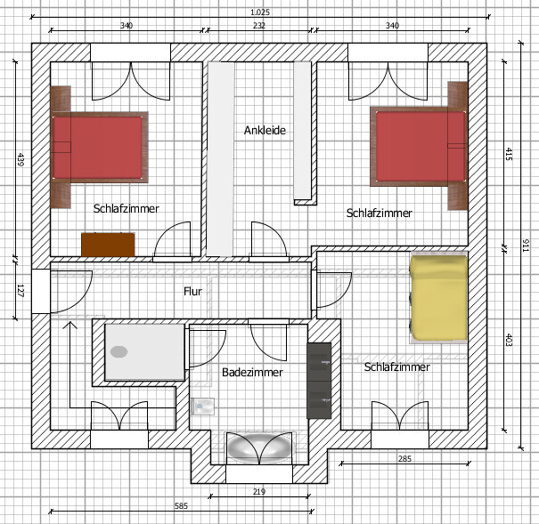 Ich habe auch wieder am Grundriss herum gewerkelt, wahrscheinlich noch immer nicht perfekt, aber eine Verbesserung zu den vorherigen - wie ich finde.