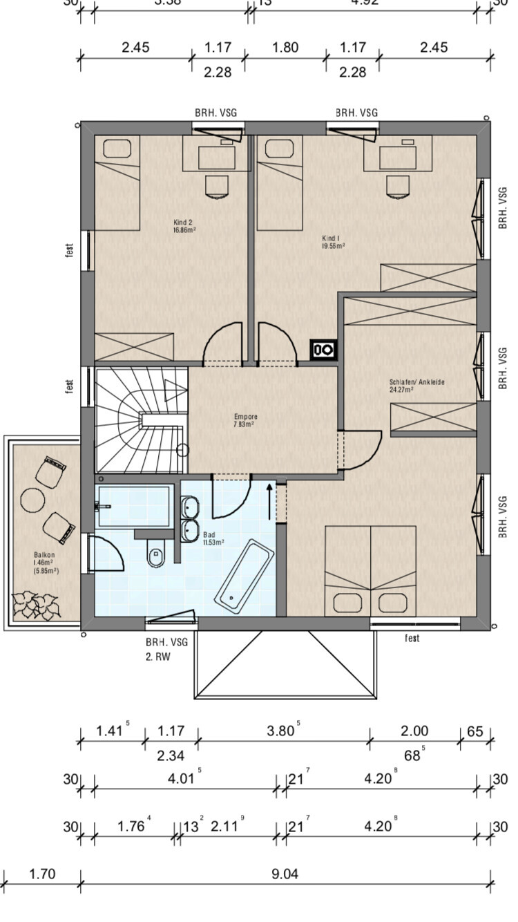 Wir haben uns gegen eine gerade Treppe entschieden, weil uns gesagt wurde das diese mehr Platz weg nimmt.Daraus lese ich, dass ihr aber eigentlich ne gerade Treppe wollt? wenn ich mir euren Grundriss und die Hausmaße so anschaue würde ich überlegen, ob es nicht Sinn macht eine gerade Treppe mit viertelter Wendlung zu nehmen. Ich finde, diese U-Treppe (mal ganz abgesehen davon, dass ich da überhaupt kein Fan von bin) nimmt euch in der Breite viel Platz weg, den ihr bei eurem relativ schmalen Haus aber v. a. in der Küche brauchen könntet.