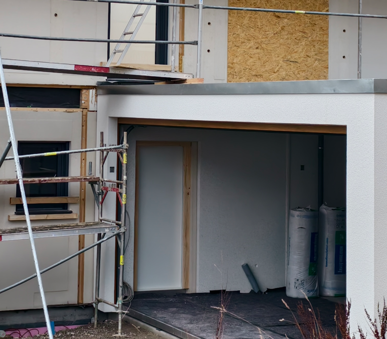 Hier sieht man den Durchgang Haus-Garage. Den Versatz bei der Tür haben wir so niedrig geplant wie möglich.