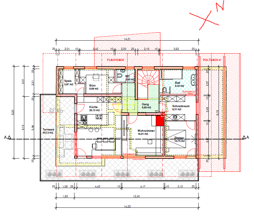 Verwirrender geht es nicht? Ich blicke da nicht durch. Wo ist die Garage wo die riesige Dachterrasse? Deine Nordausrichtung ist sehr erhellend??