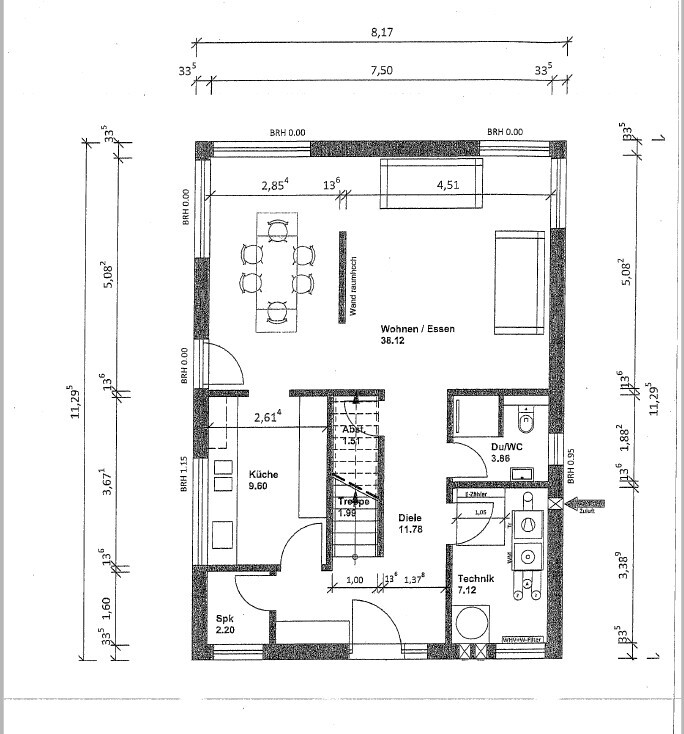 Die Trennwand im WZ sollte eigentlich bis zur Decke reichen, die 20/30 cm dann zu Lasten Wohnen und zu Gunsten Essen?