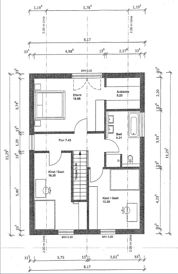 Wunsch war/ist eine grade Treppe und ein Dusch/WC im EG und eine Ankleide im OG