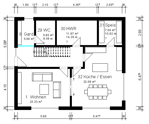 So ich habe mal etwas gemalt - etwa eure Außenmaße. Fenster hab ich nur ein paar gesetzt ;-)