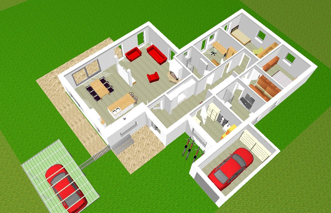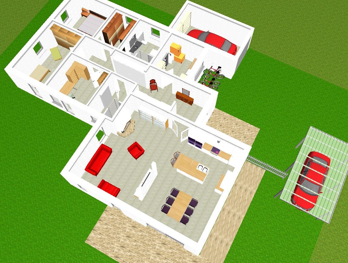 Haus ist zur Not erweiterbar, entweder planoben, -rechts oder -unten.