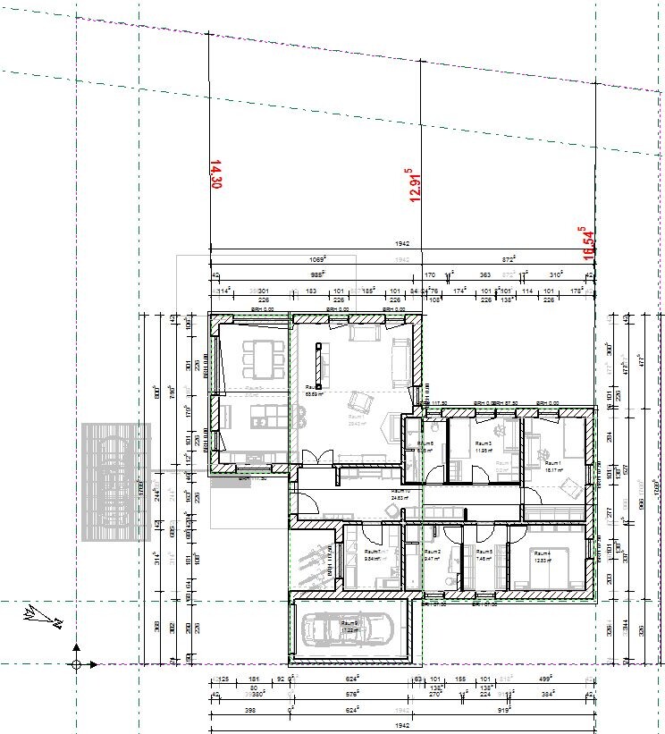 Wenn ein brauchbarer Entwurf herauskommt, kann man nicht um ein oder 2 Quadratmeter feilen. Vieles ergibt sich aus den Rahmenbedingungen wie Ausrichtung und Grundstücksgrenzen, Abstände auch. Da fällt dann das ein oder andere mal anders aus als das geträumte Wunschhaus.