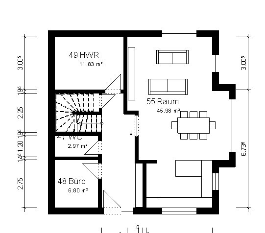 wow. womit erstellst du die Pläne - sieht ja richtig profimäßig aus.auch dir danke für die mühen. ich verstehe die Vorteile von dieser Variante, ehrlich - aber die Nachteile sind nicht zu verkraften. allein das Büro geht in dieser Größe gar nicht. ich bin selbstständig und arbeite da täglich und empfange dort auch hin und wieder Kunden; es ist also kein "ich sortiere mal die post Büro"