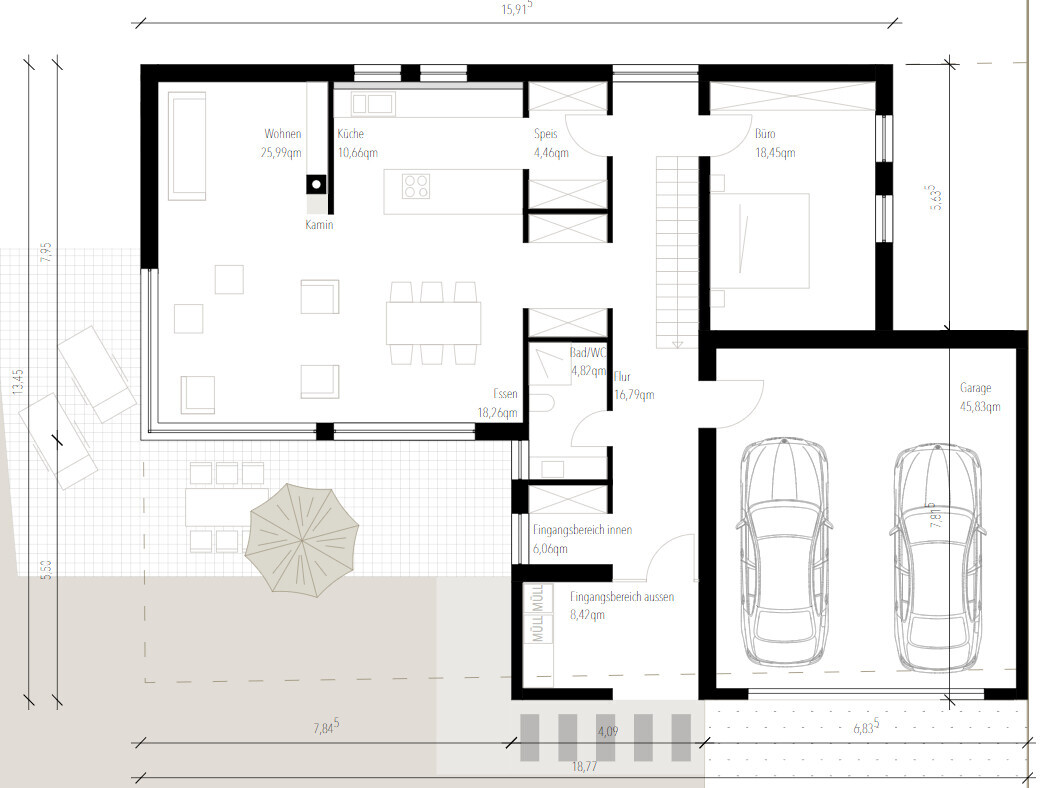 Alessandro22.07.20 16:16die Mülltonnen würd ich vielleicht auch eher aus dem Eingangsbereich nehmen und in die Garage verfrachten. Groß genug wäre sie ja