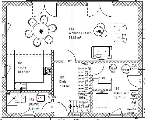 mit dem Flur oben hast Du tatsächlich recht und das wär uns jetzt noch gar nicht negativ aufgefallen, aber wenn man Deinen Grundriss sieht, dann merkt man schon, dass es auch optimierter geht. Mit dem Hauswirtschaftsraum erhält man ja immer widersprüchlige Aussagen. Der eine meint 5m² reichen, andere würden mit mindestens 12m² rechnen. Im Endeffekt kommt doch nur die Waschmaschine und der Trockner (übereinander), die Heizung und die Lüftung rein (die hängen beide an der Wand) und eben noch der WW-Speicher. Was habt Ihr da alles drin?