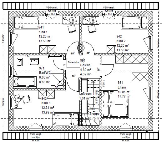 Also, dass die Ankleide zu gross im Vergleich zu den anderen Zimmer sind haben wir beim Architekten schon moniert. Denkst Du wirklich, dass die 2 Kinderzimmer zu klein sind? Im Moment haben wir noch keine, vllt haben wir deshalb dort etwas gespart :-)Unsere Kinderzimmer sind auch nicht größer, zugegeben, aber wenn ich ein Zimmer weniger gebraucht hätte, wären die 14 - 15 qm groß gewesen. Das Schlafzimmer brauche ich nur zum Schlafen - die Kinder spielen, chillen, hören Musik, machen Hausaufgaben in ihren Zimmern.UnexpectedGuest schrieb: