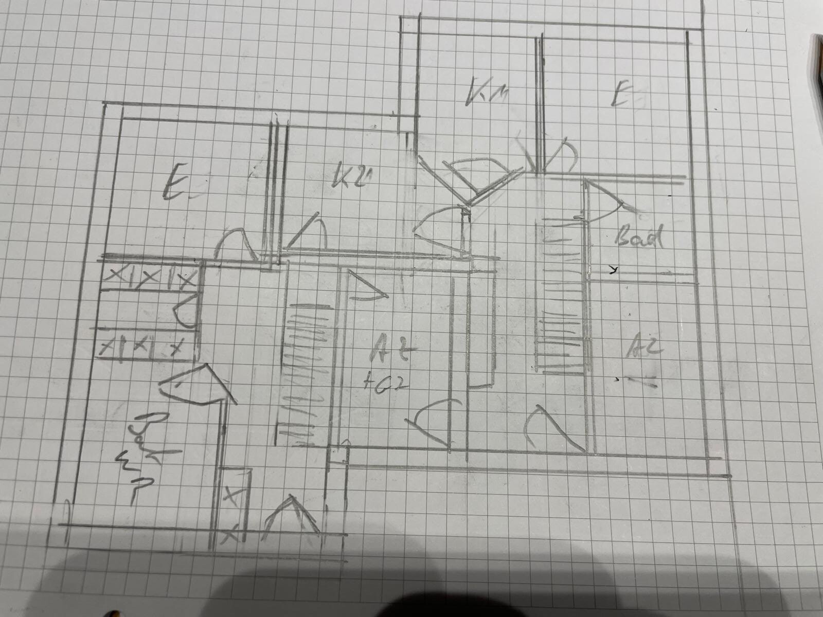 Gerade Treppe haben wir mal skizziert (ganz anders) und schwierig umzusetzen...Zum eigenen Erkennen welche Knüppel man dem Grundriss damit zwischen die Beine wirft, langt es hoffentlich.philipe schrieb: