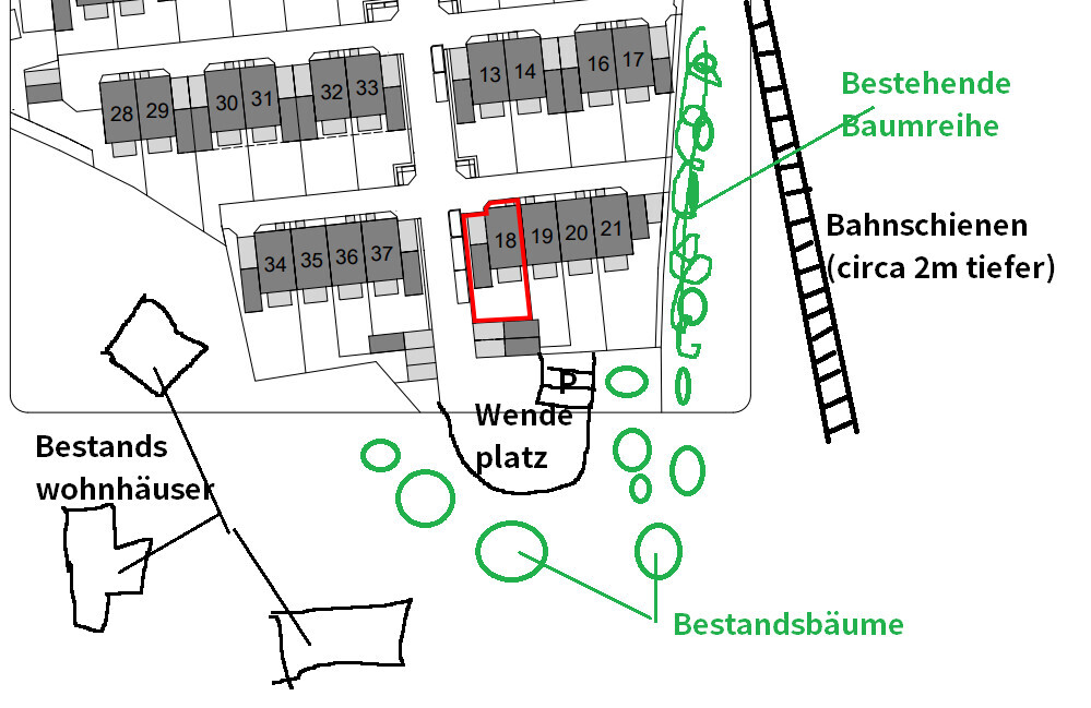 Ein paar unserer Nachbarn haben wohl eine Vergrößerung der Terrasse angefragt, so grob so: