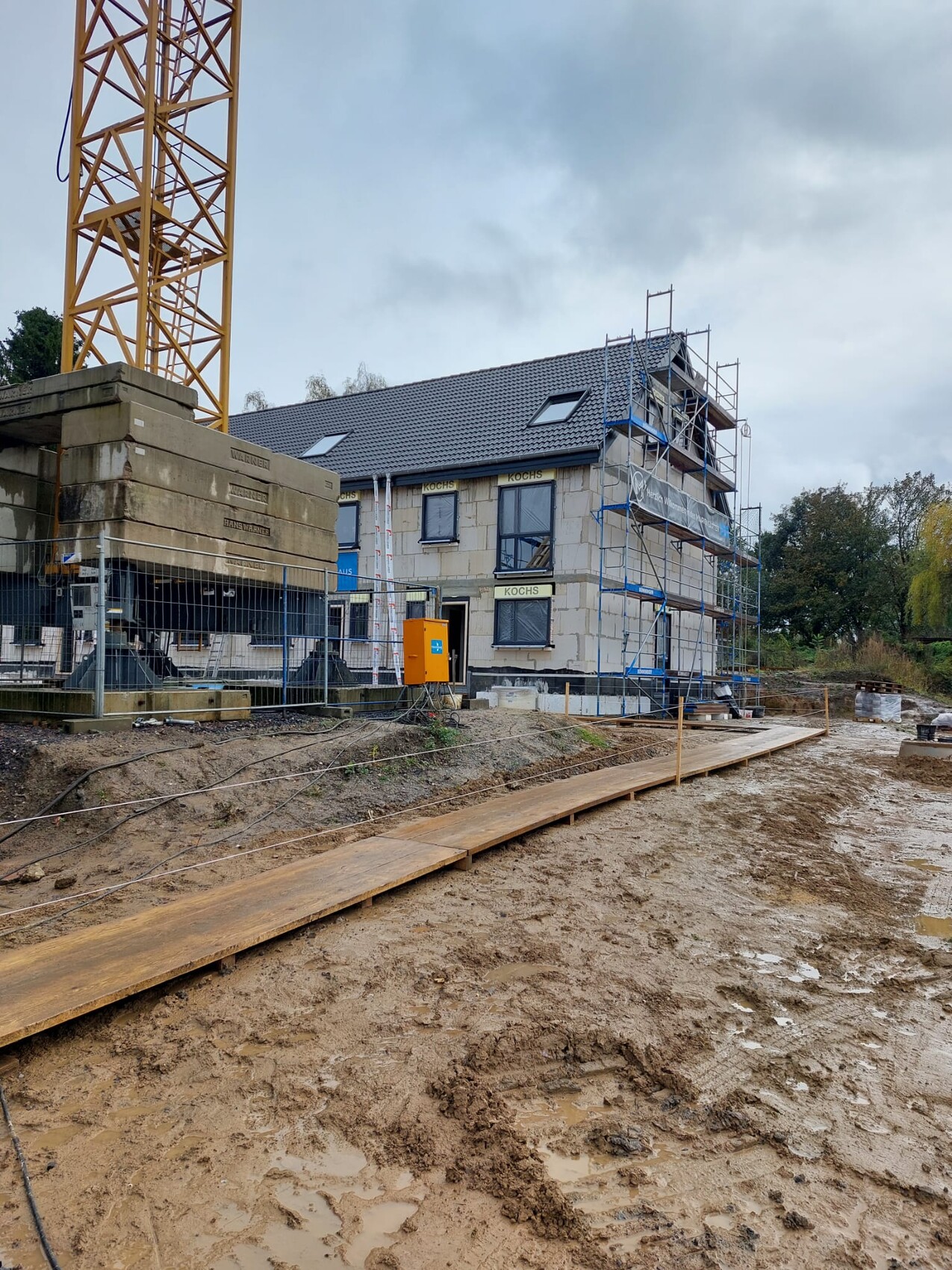 Es geht aber insgesamt jetzt echt gut voran! Am Wochenende war Richtfest, aber das war mit den Doppelhaushälften vor uns und unser Reihenhaus war eigentlich schon einen ganzen Tacken über den Richtfest-Punkt hinaus 😉 Hab ich aber nichts gegen, weil jetzt quasi pünktlich zum Wetterwechsel zum regnerischen schon Dach und Fenster fertig waren <3